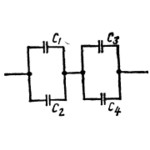 Конденсаторы соединены так как это показано на рис Электроемкости конденсаторов С1 = 0,2 мкФ С2 = 0,1 мкФ С3 = 0,3 мкФ С4 = 0,4 мкФ Определить электроемкость C батареи конденсаторов