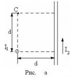 По двум бесконечно длинным прямым проводам скрещенным под прямым углом рис.а текут токи I1 = 30 А и I2 =40 А Расстояние d между проводами равно 20 см Определить магнитную индукцию В в точке С