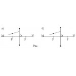 Определить построением ход луча после преломления его собирающей рис. а и рассеивающей рис. б линзами На рисунках MN – положение главной оптической оси; О – оптический центр линзы; F– фокус линзы
