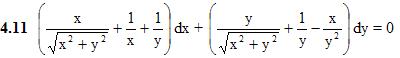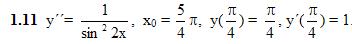 11. Обыкновенные дифференциальные уравнения 11.4 Уравнения в полных дифференциалах 11.5 Дифференциальные уравнения высших порядков, допускающие понижение порядка. ИДЗ 11.2 Вариант 11. Решебник Рябушко Часть 2 1. Найти частное решение дифференциального уравнения и вычислить значение полученной функции y=φ(x) при x=x0 с точностью до двух знаков после запятой. 2. Найти общее решение дифференциального уравнения, допускающего понижение порядка 2.11 y´´= y´ + x 3. Решить задачу Коши для дифференциального уравнения, допускающего понижение порядка. 3.11 2yy´´ = y´2 + 1 = 0, y(0) = 2, y´(0) = 1. 4. Проинтегрировать следующие уравнения. 5. Записать уравнение кривой, проходящей через точку A(x0, y0), если известно, что длина отрезка, отсекаемого на оси ординат нормалью, проведенной в любой точке кривой, равна расстоянию от этой точки до начала координат. 5.11 A(0, 4) Подробное решение. Оформлено в Microsoft Word 2003 (Задание решено с использованием редактора формул) Решение задачи добавил: Massimo, Суббота, 29.03.2014