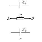 Раздел: Электростатика. Электричество и постоянный ток. Условие задачи: Два источника, ЭДС которых ε1 = 2 В ε2 = 4В, соединены, как показано на рис. а. Внешнее сопротивление R = 1 Ом, а внутренние сопротивления источников r1 = r2 = 0,5 Ом. Определите силы токов, протекающих через источники и внешнее сопротивление. Подробное решение. Оформлено в Microsoft Word 2003. (Задание решено с использованием редактора формул) Решение задачи добавил: Massimo, Суббота, 02.08.2014