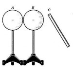 Металлические шары помещенные на изолирующих подставках привели в соприкосновение и зарядили отрицательным зарядом (рис.) Поместив на некотором расстоянии отрицательно заряженную палочку шар А ото