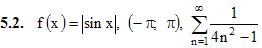 12. Ряды 12.5 Ряды Фурье ИДЗ 12.3 Вариант 2. Решебник Рябушко Часть 3 1. Разложить в ряд Фурье периодическую (с периодом ω=2π) функцию f(x) заданную на отрезке [-π; π] 2. Разложить в ряд Фурье функцию f(x), заданную в интервале (0; π) продолжив (доопределив) ее четным и нечетным образом. Построить графики для каждого продолжения. 2.2. f(x) = x2 3. Разложить в ряд Фурье в указанном интервале периодическую функцию f(x) с периодом w=2l 3.2. f(x) = 2x, −1 < x < 1, l = 1 4. Разложить в ряд Фурье функцию, заданную графически. 5. Воспользовавшись разложением функции f(x) в ряд Фурье в указанном интервале, найти сумму данного числового ряда. Подробное решение. Оформлено в Microsoft Word 2003 (Задание решено с использованием редактора формул) Решение задачи добавил: Massimo, Среда, 24.09.2014