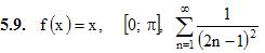 12. Ряды 12.5 Ряды Фурье ИДЗ 12.3 Вариант 9. Решебник Рябушко Часть 3 1. Разложить в ряд Фурье периодическую (с периодом ω=2π) функцию f(x) заданную на отрезке [-π; π] 2. Разложить в ряд Фурье функцию f(x), заданную в интервале (0; π) продолжив (доопределив) ее четным и нечетным образом. Построить графики для каждого продолжения. 2.9. f(x) = e2x 3. Разложить в ряд Фурье в указанном интервале периодическую функцию f(x) с периодом w=2l 4. Разложить в ряд Фурье функцию, заданную графически. 5. Воспользовавшись разложением функции f(x) в ряд Фурье в указанном интервале, найти сумму данного числового ряда. Подробное решение. Оформлено в Microsoft Word 2003 (Задание решено с использованием редактора формул) Решение задачи добавил: Massimo, Четверг, 25.09.2014
