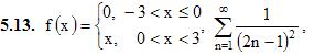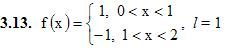 12. Ряды 12.5 Ряды Фурье ИДЗ 12.3 Вариант 13. Решебник Рябушко Часть 3 1. Разложить в ряд Фурье периодическую (с периодом ω=2π) функцию f(x) заданную на отрезке [-π; π] 2. Разложить в ряд Фурье функцию f(x), заданную в интервале (0; π) продолжив (доопределив) ее четным и нечетным образом. Построить графики для каждого продолжения. 2.13. f(x) = e4x 3. Разложить в ряд Фурье в указанном интервале периодическую функцию f(x) с периодом w=2l 4. Разложить в ряд Фурье функцию, заданную графически. 5. Воспользовавшись разложением функции f(x) в ряд Фурье в указанном интервале, найти сумму данного числового ряда. Подробное решение. Оформлено в Microsoft Word 2003 (Задание решено с использованием редактора формул) Решение задачи добавил: Massimo, Четверг, 25.09.2014