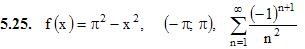 12. Ряды 12.5 Ряды Фурье ИДЗ 12.3 Вариант 25. Решебник Рябушко Часть 3 1. Разложить в ряд Фурье периодическую (с периодом ω=2π) функцию f(x) заданную на отрезке [-π; π] 2. Разложить в ряд Фурье функцию f(x), заданную в интервале (0; π) продолжив (доопределив) ее четным и нечетным образом. Построить графики для каждого продолжения. 2.25. f(x) = e−2x/3 3. Разложить в ряд Фурье в указанном интервале периодическую функцию f(x) с периодом w=2l 4. Разложить в ряд Фурье функцию, заданную графически. 5. Воспользовавшись разложением функции f(x) в ряд Фурье в указанном интервале, найти сумму данного числового ряда. Подробное решение. Оформлено в Microsoft Word 2003 (Задание решено с использованием редактора формул) Решение задачи добавил: Massimo, Четверг, 25.09.2014