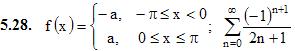 12. Ряды 12.5 Ряды Фурье ИДЗ 12.3 Вариант 28. Решебник Рябушко Часть 3 1. Разложить в ряд Фурье периодическую (с периодом ω=2π) функцию f(x) заданную на отрезке [-π; π] 2. Разложить в ряд Фурье функцию f(x), заданную в интервале (0; π) продолжив (доопределив) ее четным и нечетным образом. Построить графики для каждого продолжения. 2.28. f(x) = chx/π 3. Разложить в ряд Фурье в указанном интервале периодическую функцию f(x) с периодом w=2l 4. Разложить в ряд Фурье функцию, заданную графически. 5. Воспользовавшись разложением функции f(x) в ряд Фурье в указанном интервале, найти сумму данного числового ряда. Подробное решение. Оформлено в Microsoft Word 2003 (Задание решено с использованием редактора формул) Решение задачи добавил: Massimo, Четверг, 25.09.2014