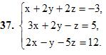ВУЗ: Сургутский государственный университет Математика для бакалавров – Промышленное и гражданское строительство 1 й семестр Методичка по математике Сургутский государственный университет Скачать файл Решенные задания из Контрольной работы 1го семестра, номера 17,27,37,47,57 Задание 1. Известны координаты вершин треугольника АВС. Составьте уравнения: а) медианы АМ проведенной к стороне ВС, б) высоты АН, опущенной на сторону ВС, в) найдите cos∟A: 17. A(1,0), B(4,4), C(9,6) Задание 2. Даны координаты вершин пирамиды А1А2А3А4. а) Применяя векторы, найдите площадь грани А1А2А3, б) Применяя векторы, найдите объем пирамиды, в) Составьте уравнение плоскости А1А2А3, г) Составьте канонические уравнения прямой l, проходящей через точку А4, перпендикулярно плоскости А1А2А3: 27. А1(4, −3, −2), А2(2, 2, 3), А3(2, −2, −3), А4(−1, −2, 3) Задание 3. а) Решите систему уравнений методом Крамера Задание 4. Решите систему с помощью обратной матрицы. Задание 5. Найдите общее решение системы методом Гаусса и запишите одно частное решение системы Подробное решение. Оформлено в Microsoft Word 2003 (Задание решено с использованием редактора формул) Если не нашли решение своего варианта, вы можете заказать его у нас. Решение задачи добавил: Massimo, Понедельник, 02.02.2015