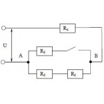 На участке АВ в цепи (см. рис.) выделяется одинаковая мощность при разомкнутом и замкнутом ключе Определить сопротивление Rx, если R0 = 20 Ом Напряжение U считать неизменным