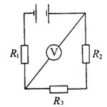 Сопротивления R1 = R2 = R3 = 200 Ом см. рисунок сопротивление вольтметра RV = 1 кОм Вольтметр показывает разность потенциалов U = 100 В Найти э.д.с. ε батареи