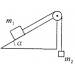 Раздел: Кинематика, механика, динамика Условие задачи: В установке на рисунке угол α наклонной плоскости с горизонтом равен 20°, массы тел m1 = 200 г и m2 = 150 г. Считая нить и блок невесомыми и пренебрегая силами трения, определите ускорение, с которыми будут двигаться тела, если тело m2 опускается. Подробное решение. Оформлено в Microsoft Word 2003. (Задание решено с использованием редактора формул) Решение задачи добавил: Massimo, Понедельник, 10.08.2015