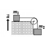 Грузы с массами m1 = 0,20 кг и m2 = 0,40 кг соединены нитью и расположены так как показано на рисунке Вся система грузов находится в лифте который движется вверх с ускорением а = 5,0 м/с2 Определи