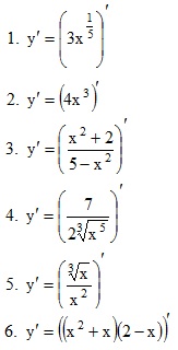 Заказ N0006 Математика Математический анализ Найти производные данных функций