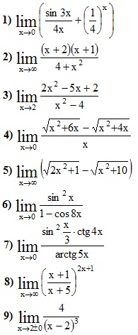 Заказ N0014 Математика Математический анализ Найти пределы указанных функций