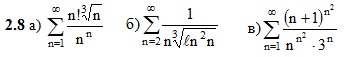Решенное на заказ задание по математике Вариант 8 I. Найти сумму ряда II. Исследовать ряд на сходимость III. Выяснить, какие из знакочередующихся рядов сходятся абсолютно, какие условно, какие расходятся. Подробное решение. Оформлено в Microsoft Word 2003 (Задание решено с использованием редактора формул) Решение подобного задания, вы можете заказать у нас Решение задачи добавил: Massimo, Четверг, 19.11.2015