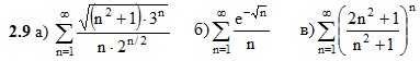 Решенное на заказ задание по математике Вариант 9 I. Найти сумму ряда II. Исследовать ряд на сходимость III. Выяснить, какие из знакочередующихся рядов сходятся абсолютно, какие условно, какие расходятся. Подробное решение. Оформлено в Microsoft Word 2003 (Задание решено с использованием редактора формул) Решение подобного задания, вы можете заказать у нас Решение задачи добавил: Massimo, Пятница, 20.11.2015