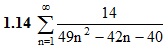 Решенное на заказ задание по математике Вариант 14 I. Найти сумму ряда II. Исследовать ряд на сходимость III. Выяснить, какие из знакочередующихся рядов сходятся абсолютно, какие условно, какие расходятся. Подробное решение. Оформлено в Microsoft Word 2003 (Задание решено с использованием редактора формул) Решение подобного задания, вы можете заказать у нас Решение задачи добавил: Massimo, Суббота, 21.11.2015