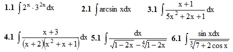 ИДЗ Рябушко Контрольная работа "Неопределенные интегралы" (2 часа) Вариант 1