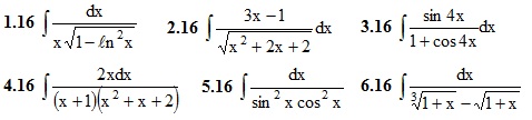 ИДЗ Рябушко Контрольная работа "Неопределенные интегралы" (2 часа) Вариант 16