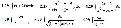 ИДЗ Рябушко Контрольная работа "Неопределенные интегралы" (2 часа) Вариант 29